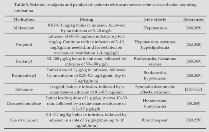 - Terapias no convencionales para revertir el asma casi fatal: Sulfato de Magnesio (relajación del músculo liso), B2 agonistas parenterales no están recomendados (Terbutalina, Salbutamol), ventilación no invasiva (aun no se considera un estándar), intubación y ventilación mecánica para aquellos con falla respiratoria.