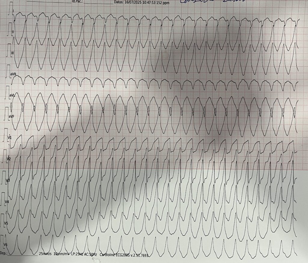 En nuestra paciente la taquiarritmia generó alteración del estado mental y tiempo de llenado capilar distal, por lo cual realizar una cardioversión sincronizada estaba indicado. ¿Qué pasó después? Eso lo dejaremos para otra ocasión.