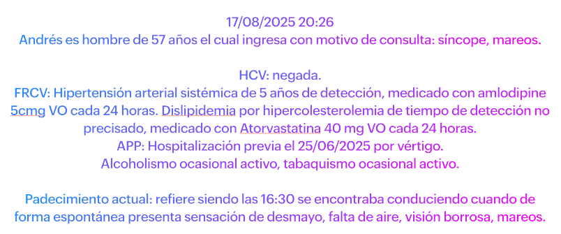 Con este material deberíamos ser capaces de poder realizar el abordaje inicial esta paciente, que se presenta al Servicio de Urgencias con motivo de consulta: Síncope.